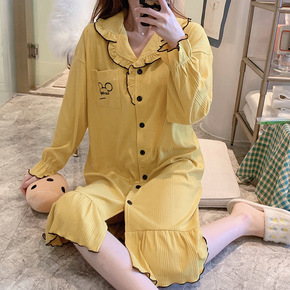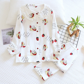 新款可爱娃娃领睡衣女春秋长袖棉水洗棉纱薄款甜美开衫...