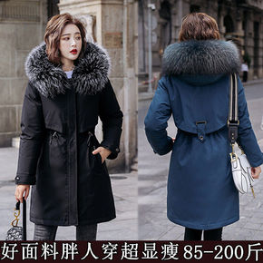 加肥加大码棉衣女中长款加绒加厚派克服胖MM200斤...