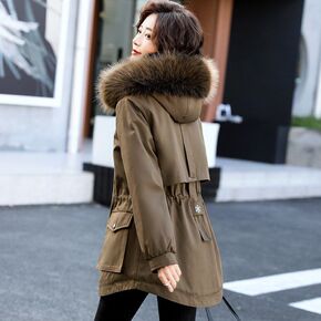 小个子风衣派克服2021年新款冬保暖收腰外套加绒棉...