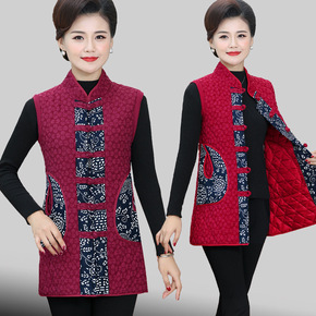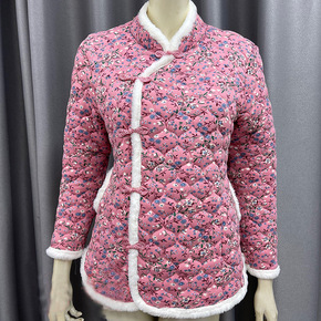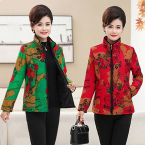 民族风妈妈盘扣夹棉保暖小棉衣40岁中年女唐装短款花...