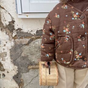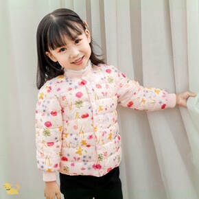 韩国童装2021深秋冬新款女童碎花夹棉外套单排扣圆...