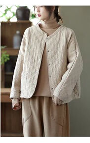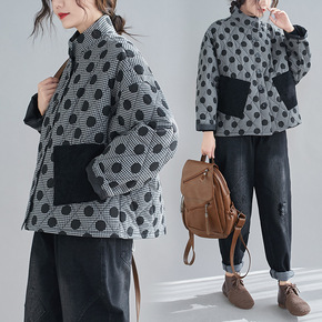 2021复古文艺菱格棉服女短款减龄妈妈棉袄加厚圆点...