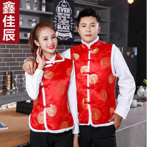 服务员茶楼小棉袄圣诞节庆元旦演出唐装棉马甲超市新年...