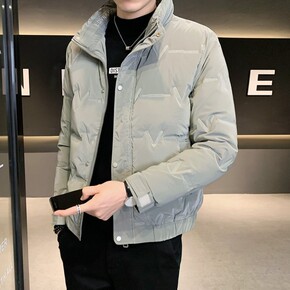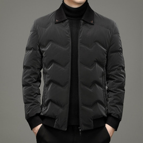 鹅绒服2021新款羽绒服男士短款休闲外套中年人简约...