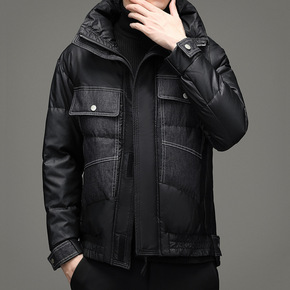 羽绒服男冬季2021年新款潮牌轻薄短款帅气牛仔拼接...
