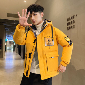 2021冬季新品时尚修身韩版男士90绒连帽潮流时尚...