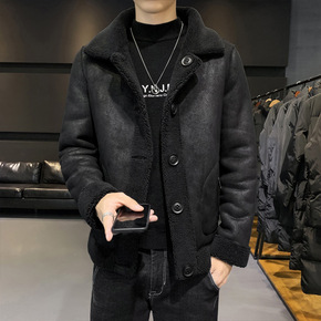 秋冬羊羔毛绒港风外套男韩版宽松潮流卫衣男青少年棉服...