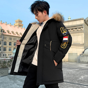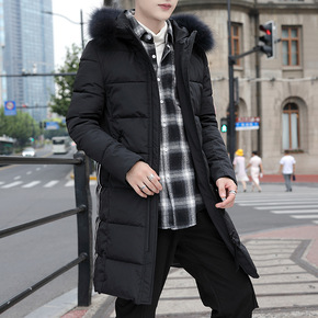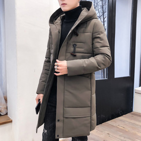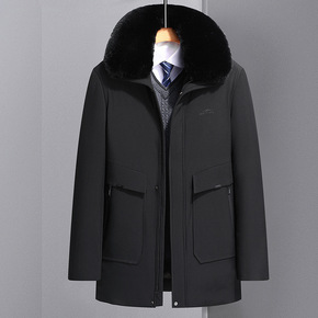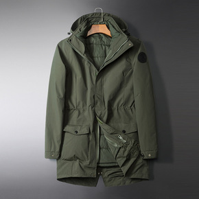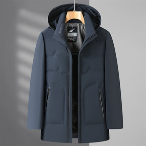 21中老年男士加厚保暖连帽羽绒服爸爸冬装外套中长款...