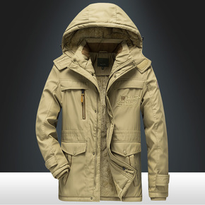 男装冬季新款棉衣男加绒加厚保暖外套宽松中长款脱毛领...