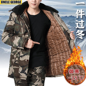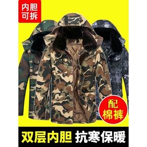 冷库防寒棉服男冬季中长款迷彩棉大衣男宽松大码加厚劳...