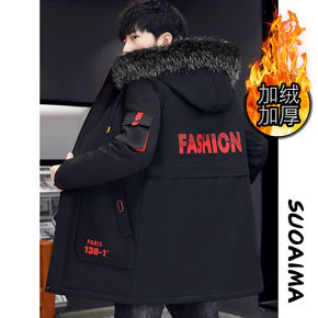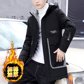 2018中长款男棉衣冬季加绒加厚连帽棉袄休闲加肥大...