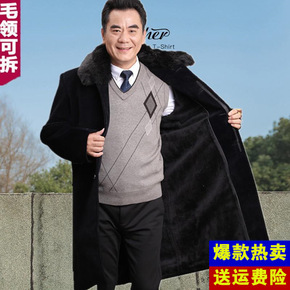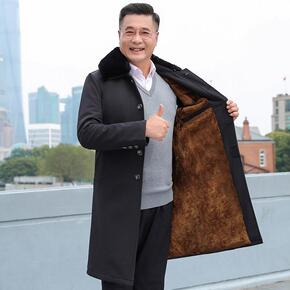 冬季中长款外套中年男装爸爸厚款棉衣外套中老年男士上...