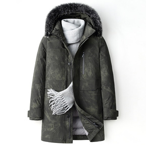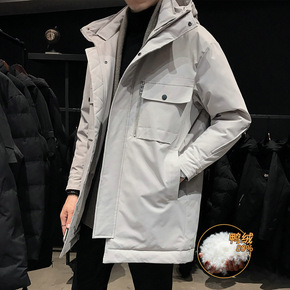 冬季工装羽绒服男士白鸭绒中长款保暖加厚男装连帽90...