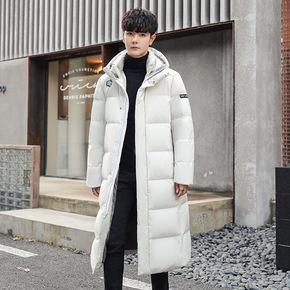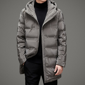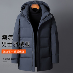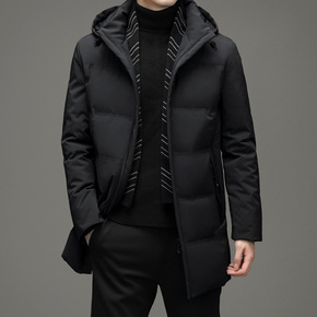 高端男士2021冬季新款白鸭绒羽绒服中长款连帽休闲...