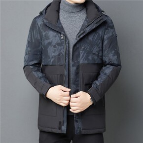 2021新款冬季羽绒服男士中长款加厚连帽休闲外套9...