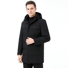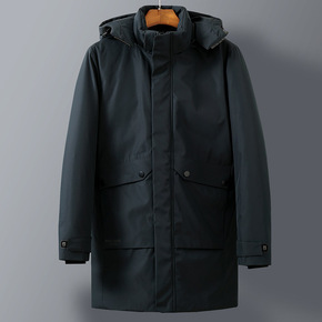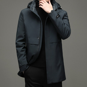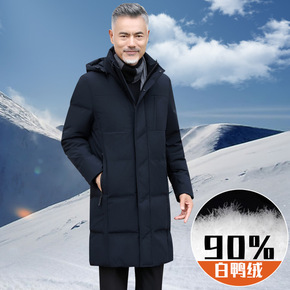 秋冬季男装羽绒服中长拉链连帽商务中年潮装白鸭绒男式...