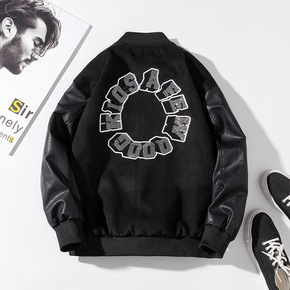 男时尚潮牌外套秋冬季潮流皮袖棉夹克暗黑风街头痞帅气...