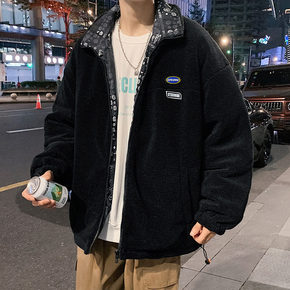 男士羽绒棉服韩版潮流帅气棉衣宽松羊剪绒棉袄青少年港...