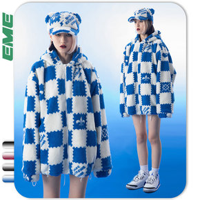 羊羔毛假两件外套冬棉服男女2021年新款加绒加厚设...