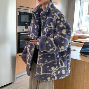 秋冬季羊羔绒毛棉衣男外套加绒加厚宽松棉袄男生韩版潮...