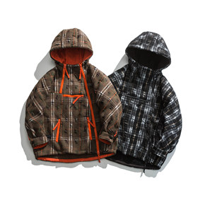 MADEEXTREME 街头复古格子棋盘棉服多色男...