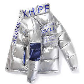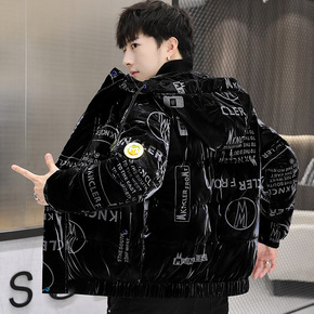 跨境男士冬季外套新款亮皮棉衣韩版潮流潮牌加厚羽绒棉...