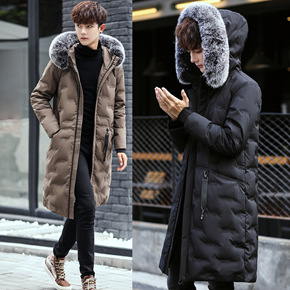 新款棉服男式棉衣冬装狐狸毛连帽中长款修身风衣潮流大...