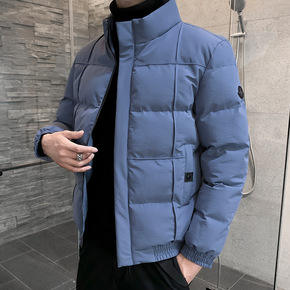 男士休闲羽绒棉服冬季新款保暖加厚纯色立领棉衣韩版潮...