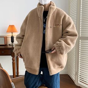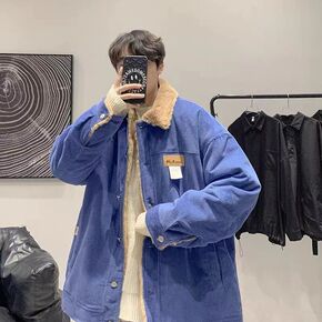 男士冬季新款外套羊羔绒男装帅气立领潮流加厚棉衣港风...
