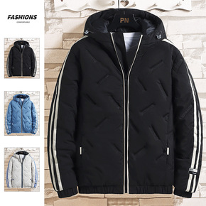 2022新款男士棉服潮流时尚两条杠保暖加厚连帽棉袄...