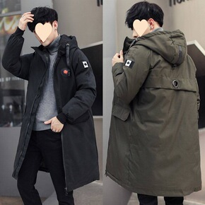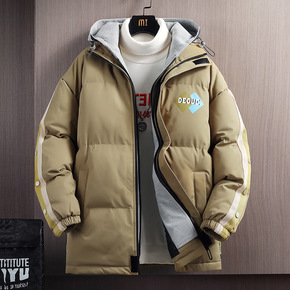 冬季2022休闲连帽羽绒棉服男中长款棉衣加厚保暖青...