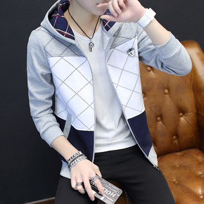 2017春秋青少年连帽卫衣男士长袖开衫男式卫衣男装...