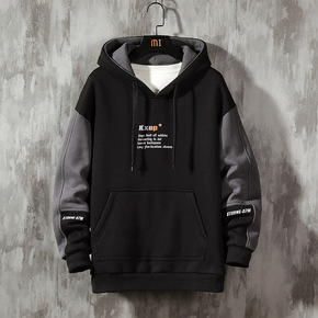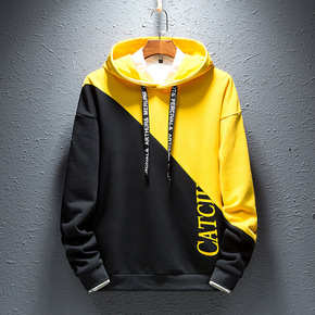拼接卫衣男潮牌春秋款撞色长袖ins潮流男装套头连帽...