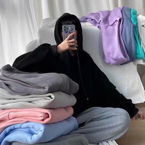 秋冬季连帽潮流卫衣套装男韩版外套青少年宽松休闲运动...