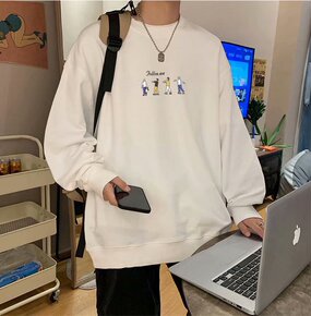 2021春秋季新款男士圆领长袖上衣服韩版潮流宽松笑...