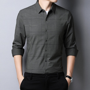 2020新款男士条纹衬衣青年修身衬衫男休闲舒适上衣...