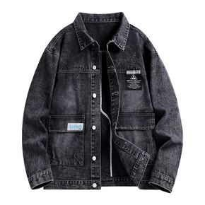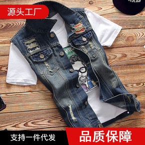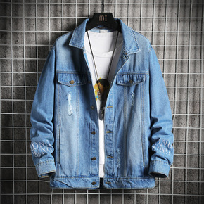 韩版男装夹克批发男式潮牌破洞牛仔外套秋款复古翻领J...