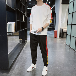 男士长袖套装2020春秋韩版ing潮流连帽卫衣宽松...