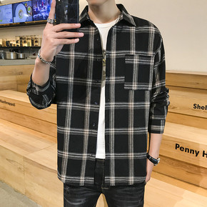秋季韩版时尚格子衬衫男长袖韩版潮流帅气春秋薄款外套...