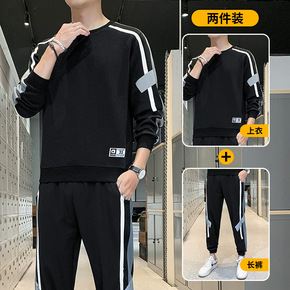 2022春秋季新款男士套装时尚韩版宽松圆领套头卫衣...