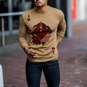 秋季长袖欧美跨境男装亚马逊独立站新款红心A印花圆领...