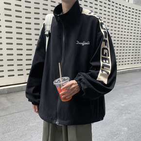 港风秋装韩版水洗棉立领夹克男宽松潮牌侧边印花小外套...