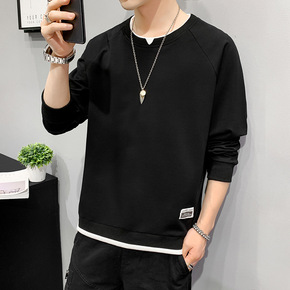 港风圆领套头卫衣男2022春季新款印花撞色简约男士...