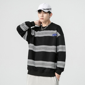 条纹卫衣男士刺绣2022春秋新款打底衫潮牌ins高...