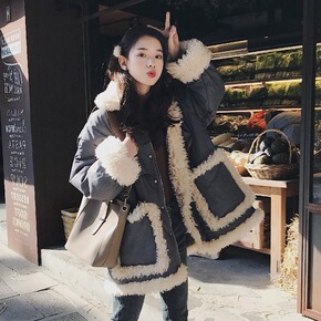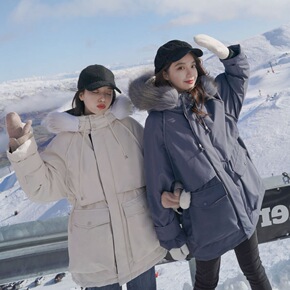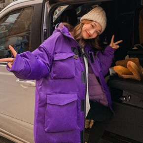 欧洲站2022韩版新款棉服女中长款宽松收腰显瘦学院...