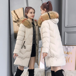 秋冬新款羽绒棉棉服女韩版修身大码中长款连帽大毛领棉...