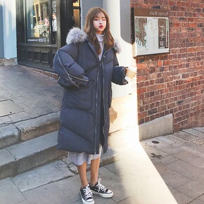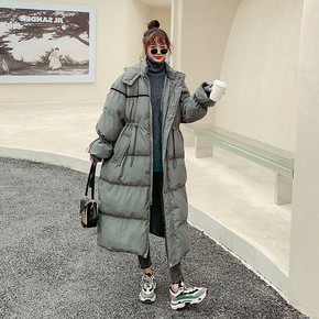 实拍2020冬新款韩版宽松连帽长款过膝羽绒棉服学生...