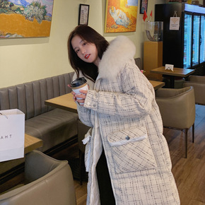 实拍冬季新款2020年格子大毛领宽松休闲大口袋长款...
