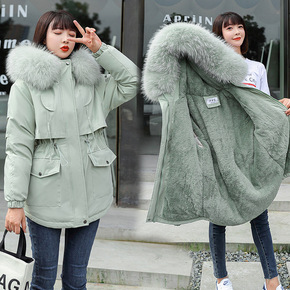 中长款派克服女2022冬季韩版新款收腰棉衣女毛绒内...
