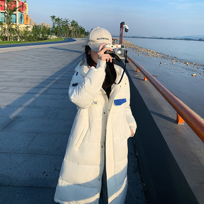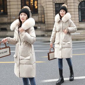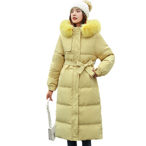 韩国东大门修身显瘦腰带夏诗文同款羽绒棉女过膝长款2...